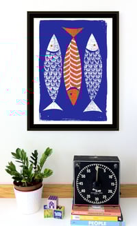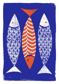 "3 Fish" screenprint, where Scandi and Coastal vibes meet Mid-Century style in our hand pulled silkscreen print.