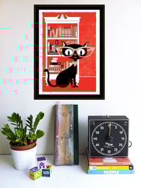Bring a little backwards luck into your world with this erudite kitty cat.